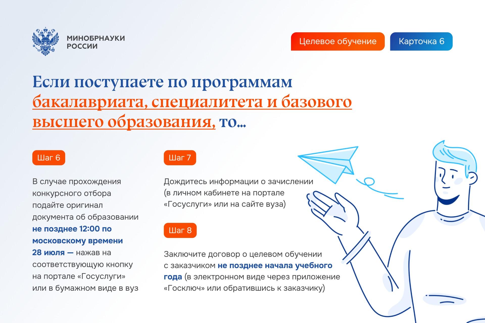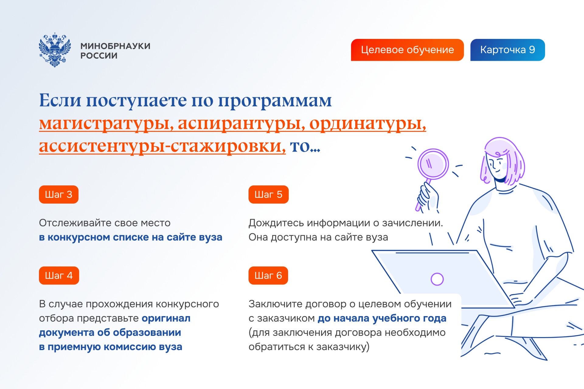 - Постановление Правительства РФ от 27 апреля 2024 года о целевом обучении. В нем вы прочтёте общие правила целевого обучения и найдёте типовой договор между абитуриентом и заказчиком;